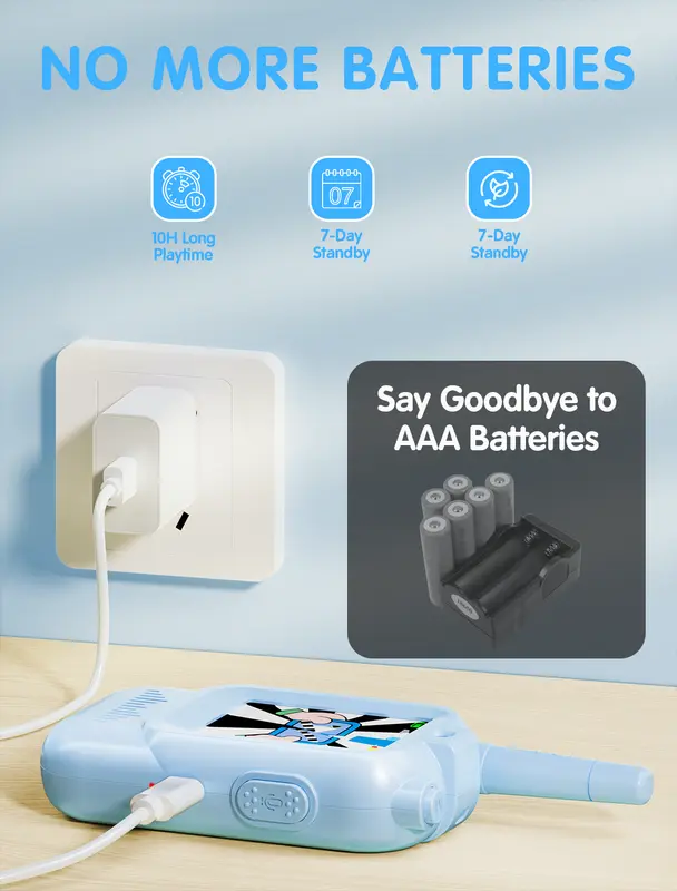Kids typically get hours of playtime per charge, depending on usage. The included USB cables make recharging simple.